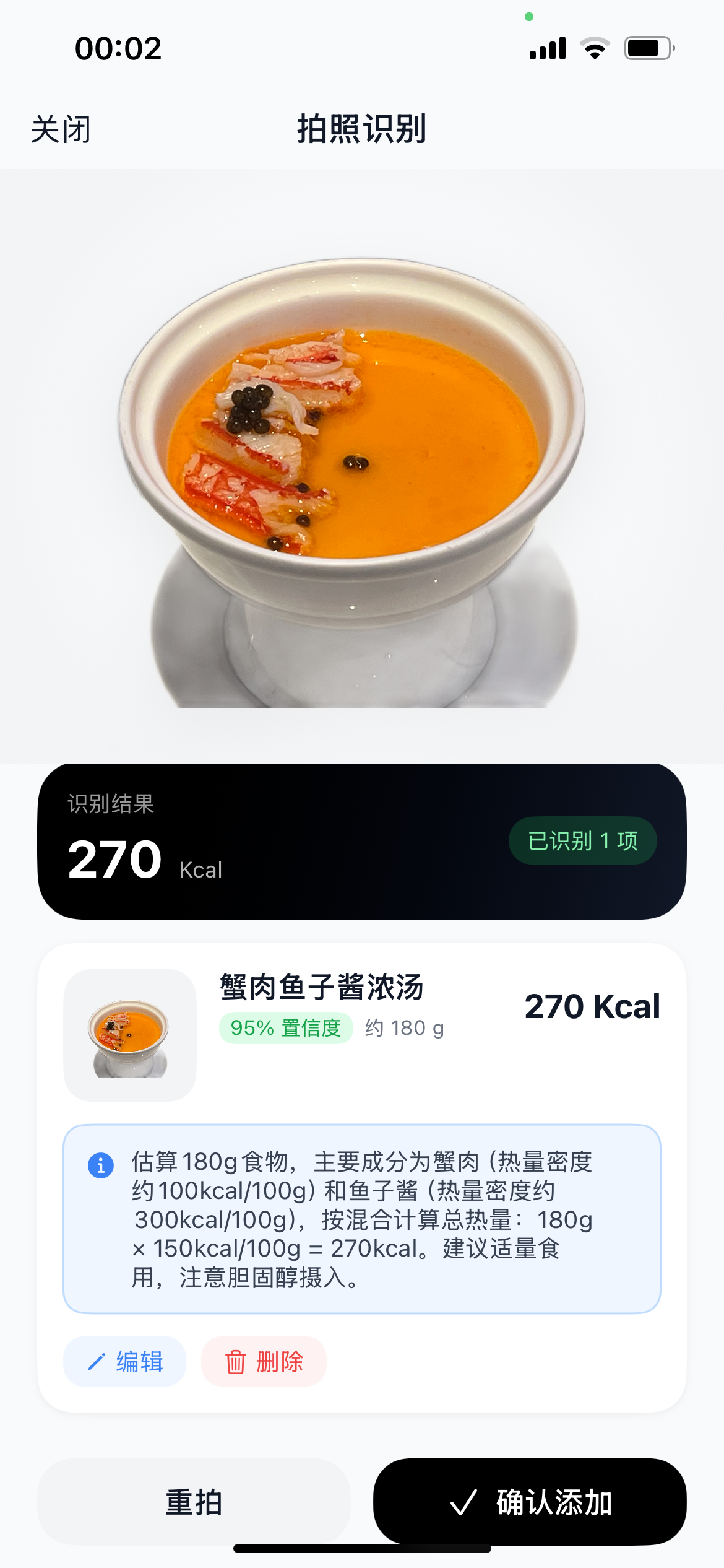 AI拍照识别食物,精准计算热量,个性化健康建议,让健康饮食管理变得简单高效