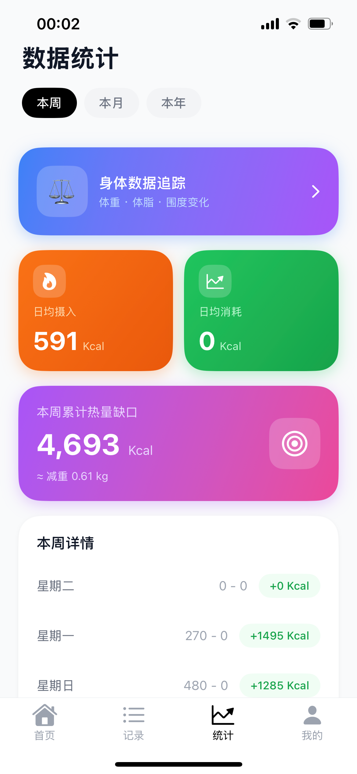 实时监控每日摄入与消耗,直观的数据可视化展示